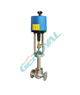 电动低温调节阀是采用引进型电动执行器与超低温调节阀阀体组成。执行器内含饲服功能,接受统一的4-20mA或1-5V·DC的标准信号,将电流信号转变成相对应的直线位移,自动地控制调节阀开度,达到对管道内流体的压力、流量、温度、液位等工艺参数的连续调节。电动低温调节阀适合于低于0~-196℃状态下工作,由电动执行机构和带长颈接管的阀体组成,长颈接管的作用是使阀杆密封出接近常温下工作,并减少外界热能传入。为减少传递,长颈采用薄壁结构。