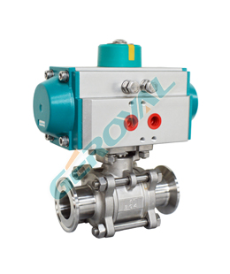 卫生级气动球阀是气动执行器与快装球阀装配组成。也称为气动快装球阀和气动卡箍球阀。可分为两通和三通、四通结构,皆经过了精密的检验流程和严格的品质管理,流道经过精密抛光和除菌处理,采用了全包的F4密封,没有死角且容易清洗。直通式卫生级气动球阀阀体采用不锈钢精制而成,流道内壁0.5um(240Grit)电子抛光,保持流体畅通无阻。密封面采用的全包PTFE没有死角,保证卫生。卫生级气动球阀广泛应用于啤酒工程、食品工程、化学工程、制药工程、生物工程和水处理工程等领域。