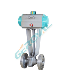 气动高温球阀是采用金属硬密封球阀及活塞式气动执行器组成。气动高温球阀密封面采用金属硬密封阀座,可适用于≤500°以内的介质。气动高温球阀可配以阀门定位器输入控制信号(4-20mADC或1-5VDC)气源即可控制运转。配行程限位开关、电磁阀、减压阀及0.4~0.7MPa气源可实现开关操作,并送出二对无源触点信号指示阀门的开关。气动高温球阀整体具有结构紧凑、体积精小、运行可靠、密封性好、维修容易、安装方便、适应性强等优点。特别适合于介质是粘稠、含颗粒、纤维性质的场合。气动高温球阀广泛应用于石油、化工、教学设备、轻工、高压设备、制药、造纸等工业自动控制系统中,作远距离集中控制或就地控制。